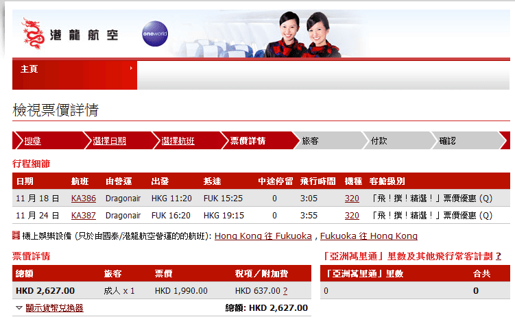 或到 ZUJI HONG KONG 查一下航班機位和訂購,價格和官方網站一樣