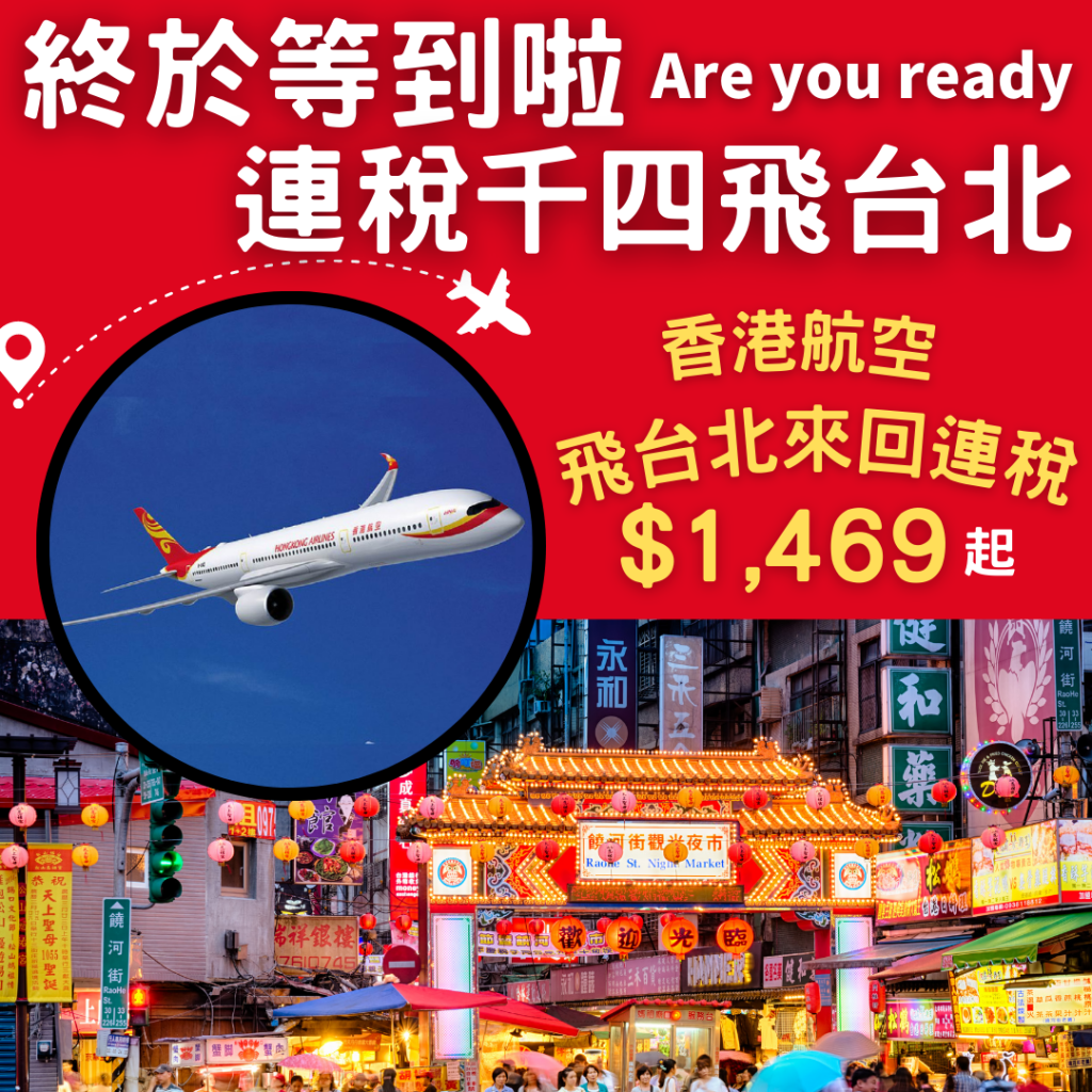 終於等到自由行啦!連稅千四飛台北!Are you ready!可早機去晚機返!香港飛台北來回連稅只需$1,469起 – 香港航空