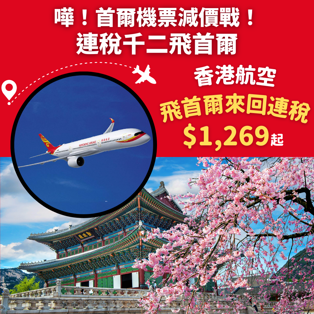 嘩!首爾機票減價戰!港航再減!連稅千二飛首爾!香港飛首爾來回連稅只需$1,269起 – 香港航空