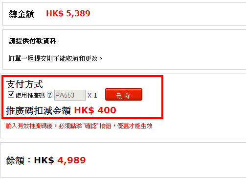 大家記住要係付款頁面輸入推廣碼 “PA553” 先可以每位即時減$200 (如下圖)