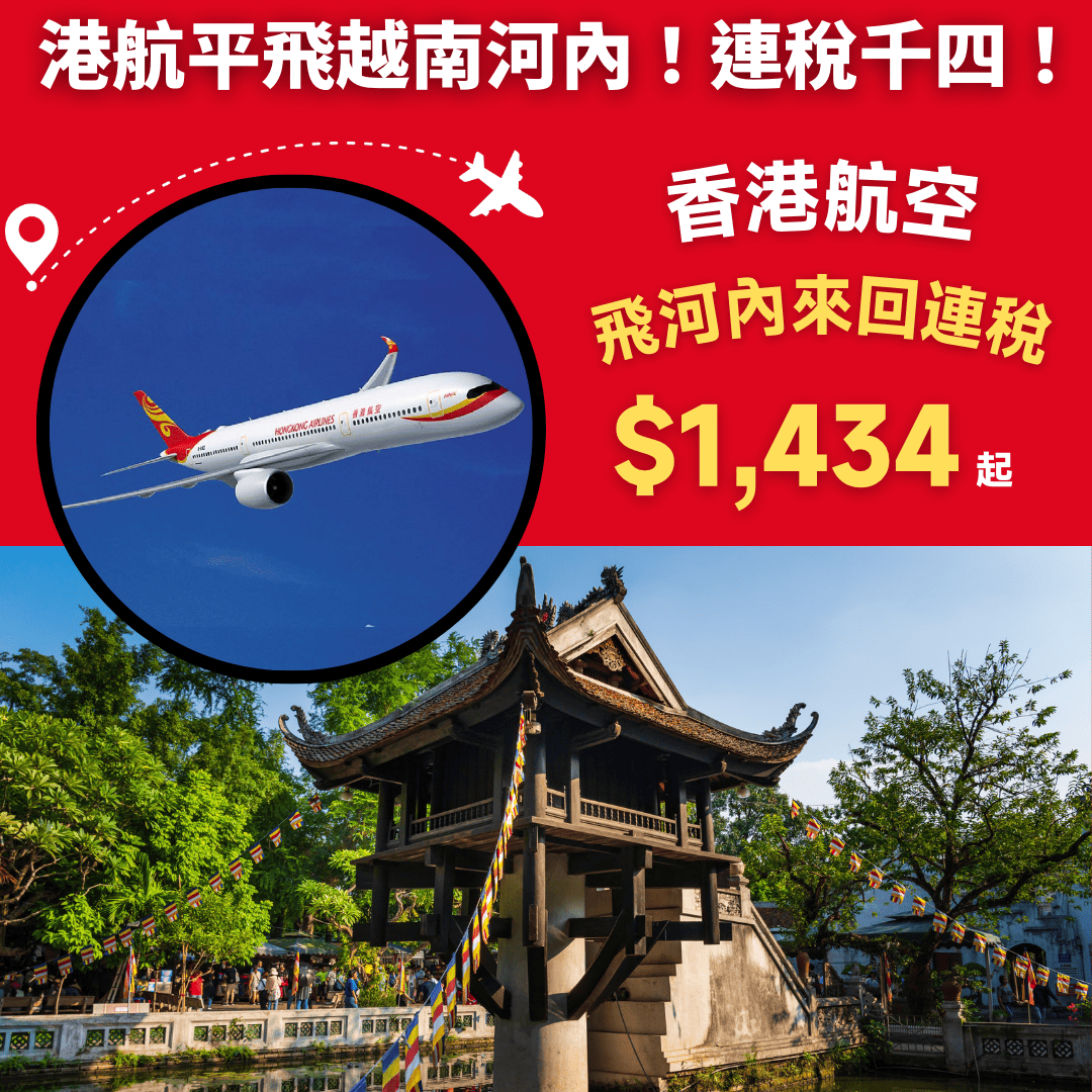 港航平飛河內!連稅千四!香港飛河內來回連稅$1,434起 – 香港航空