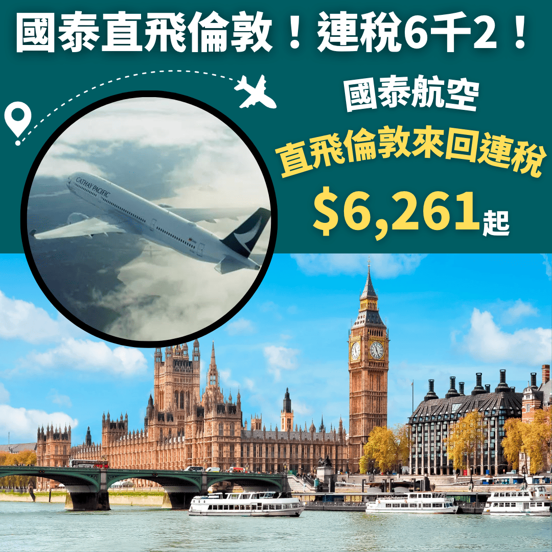 國泰直飛倫敦!連稅6千2!香港直航往返倫敦來回連稅只需$6,261起 – 國泰航空