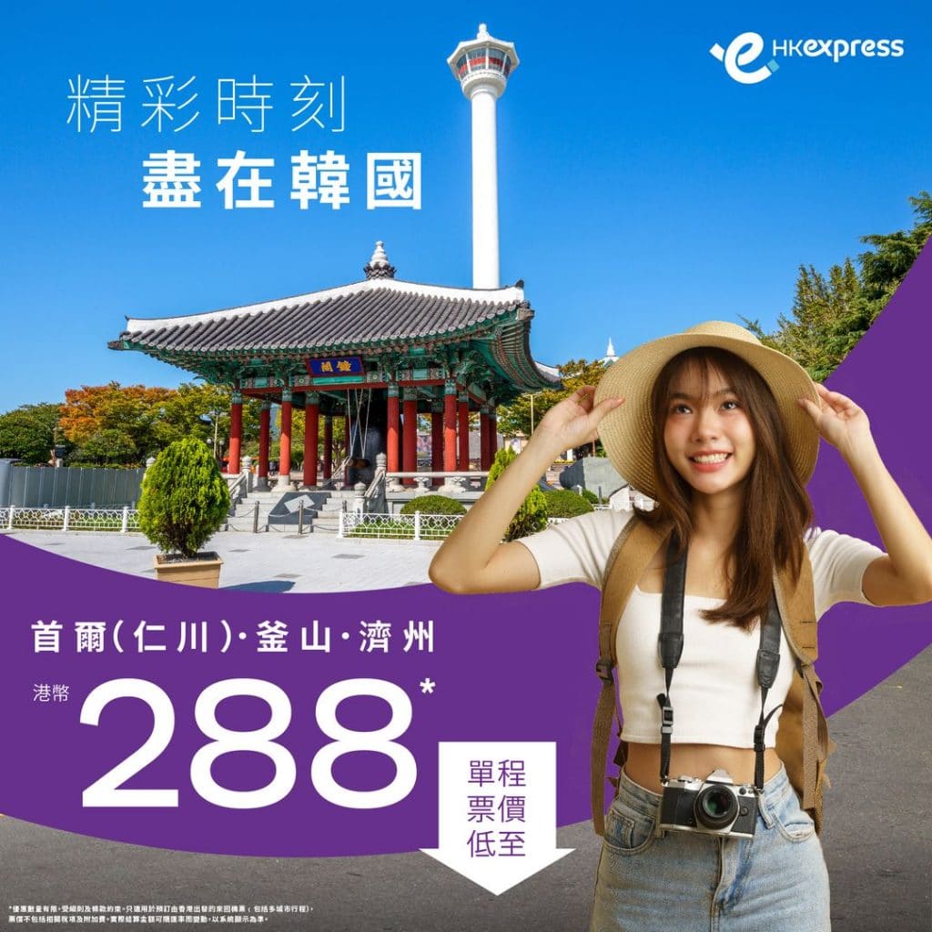 正!暑假旺季都有平!韓國快閃優惠!香港飛首爾/釜山/濟州單程只需$288起 – HK Express (優惠至4月14日)
