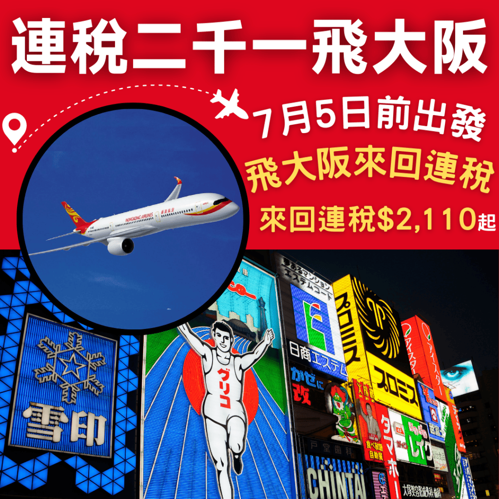 嘩!連稅二千一飛大阪!7月5日前出發!香港飛大阪來回連稅只需$2,110起 – 香港航空 (優惠至4月30日)