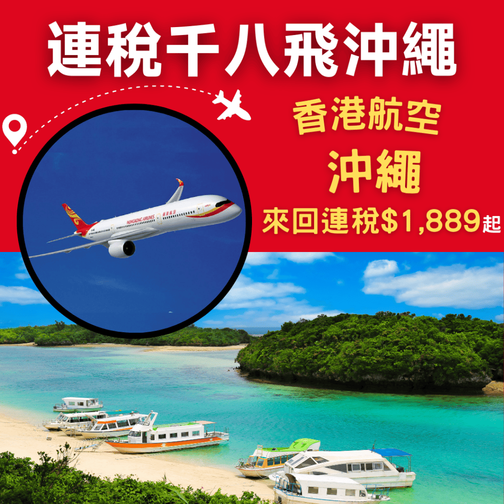 抵呀!連稅千八飛沖繩!香港飛沖繩來回連稅只需$1,889起 – 香港航空 (優惠至4月30日)