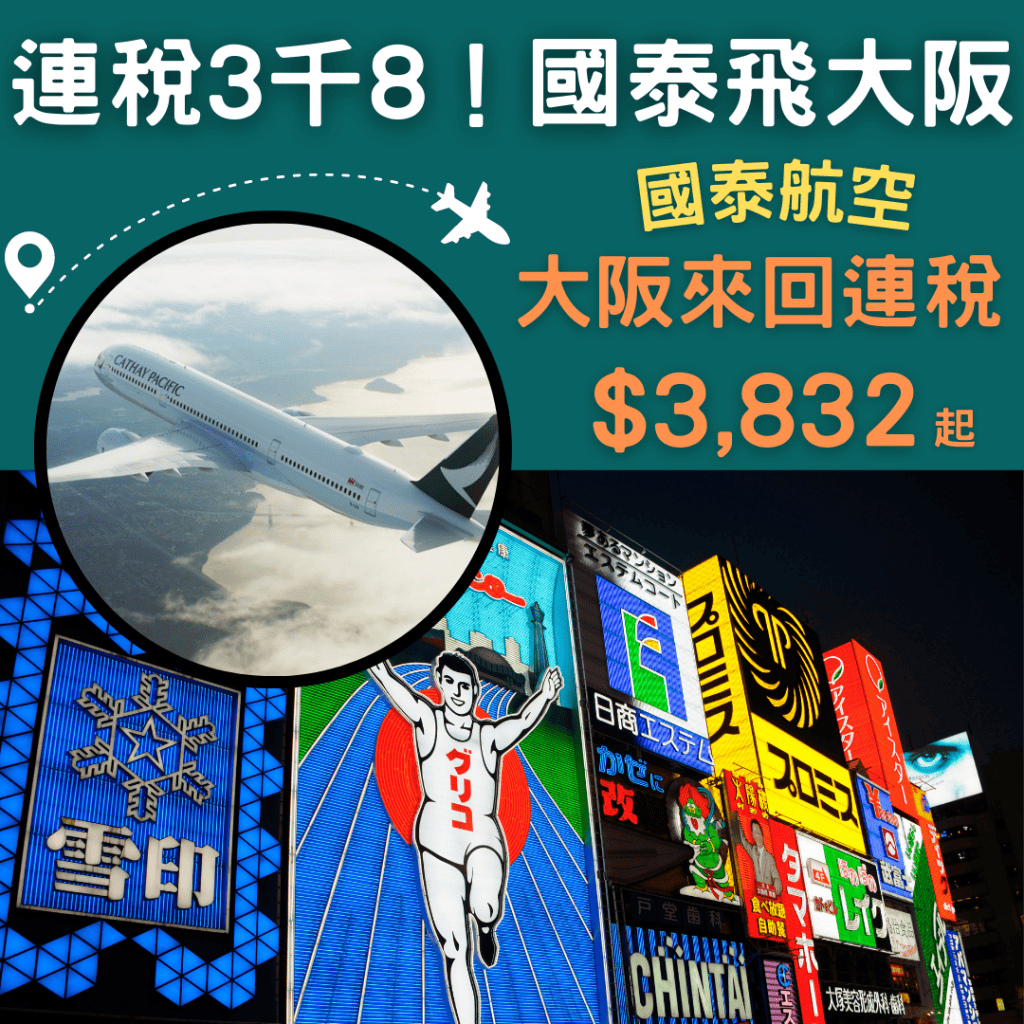 連稅3千8!國泰飛大阪!7月6日前出發!香港飛大阪來回連稅只需$3,832起 – 國泰航空 (優惠至5月31日)