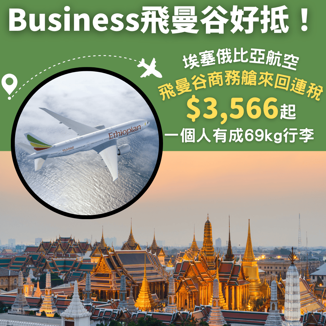 Business飛曼谷好抵!連稅3千5!一個人有成69kg行李!香港飛曼谷商務艙來回連稅只需$3,566起 – 埃塞俄比亞航空
