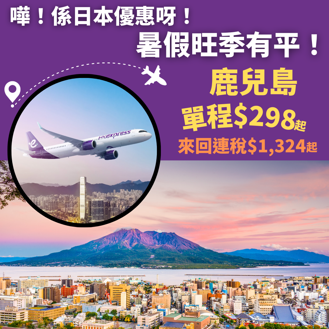 嘩!係日本優惠呀!暑假旺季都有平!香港飛鹿兒島單程只需$298起 – HK Express (優惠至5月17日)
