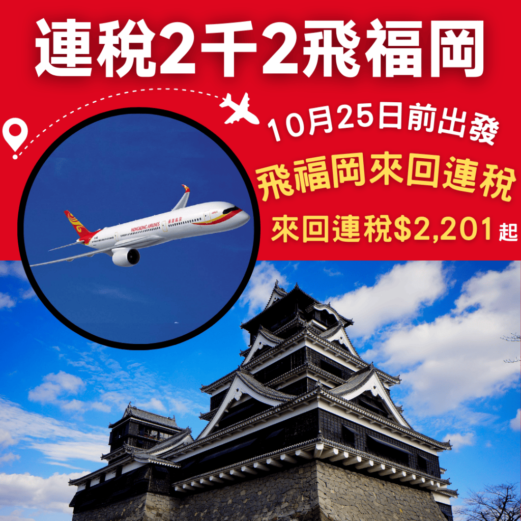 連稅2千2飛福岡!10月25日前出發!香港飛福岡來回連稅只需$2,201起 – 香港航空