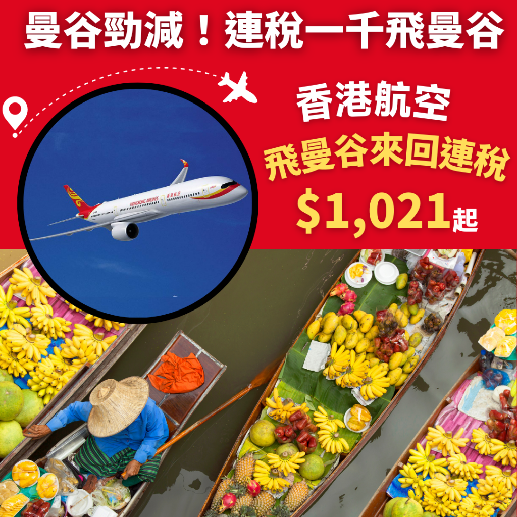 嘩!曼谷勁減!連稅一千飛曼谷!6月30日前出發!香港飛曼谷來回連稅$1,021起 – 香港航空