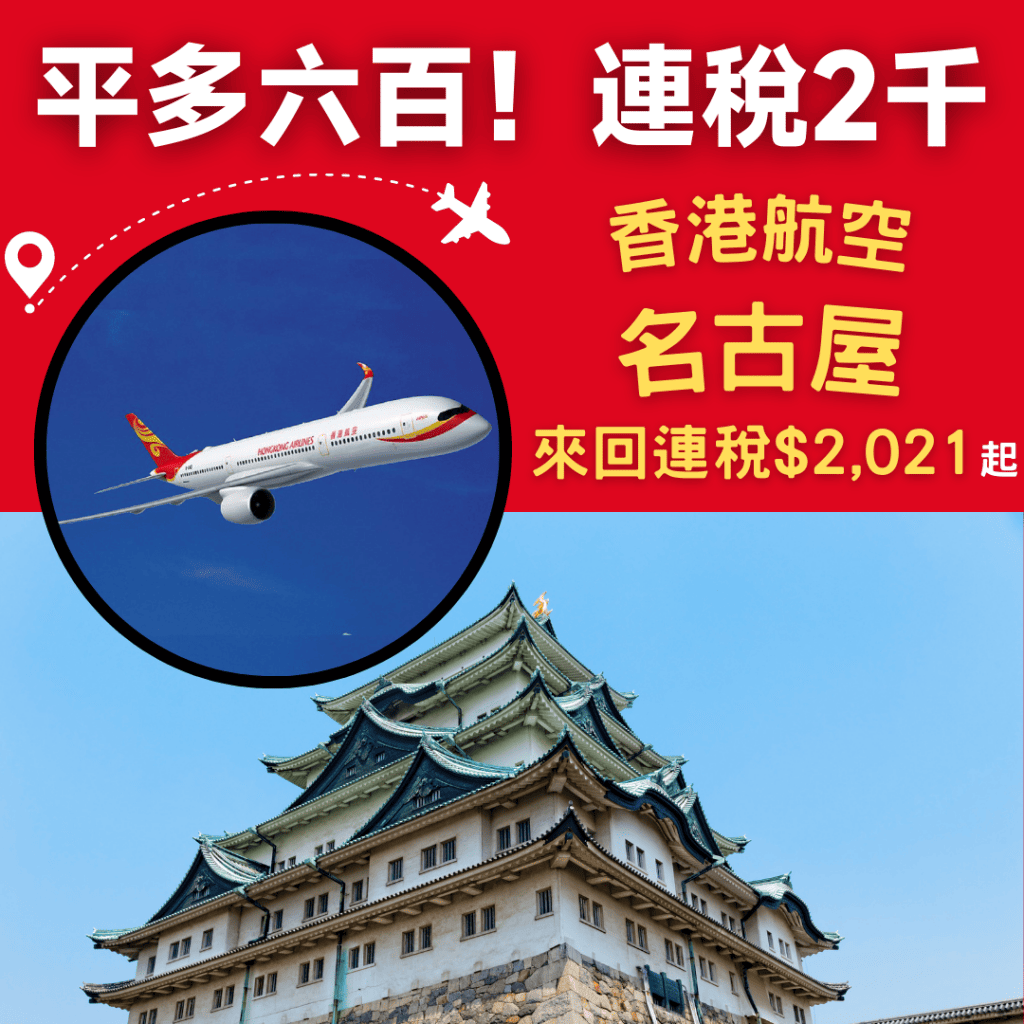 平多六百!連稅2千!早機去午機返!香港飛名古屋來回連稅只需$2,021起 – 香港航空
