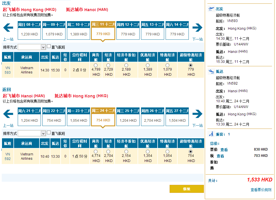 提提大家,河內香港航空12月5日至12月19日出發都仲有一些$710起既”一click即享”優惠,會員再減$50,即$660起,連稅$1,363起,平過越南航空