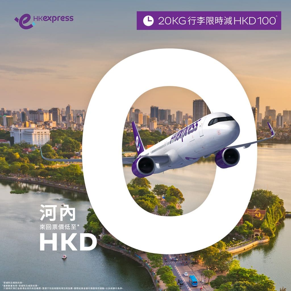 嘩!$0機票再現!$0飛河內!香港飛河內來回只需$0起 – HK Express (優惠至7月19日)