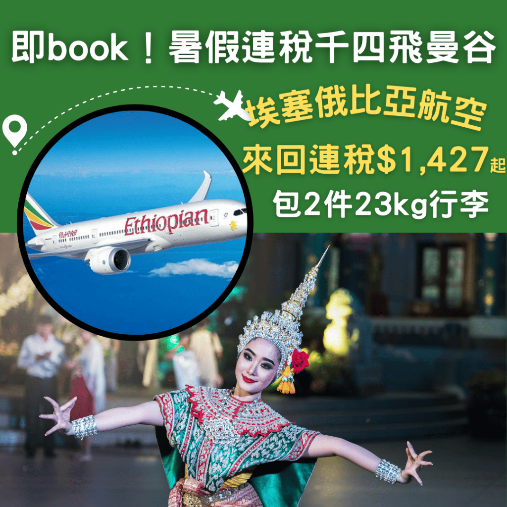 啱就即book!暑假連稅千四飛曼谷!包2×23=46行李!香港飛曼谷來回連稅只需$1,427起 – 埃塞俄比亞航空