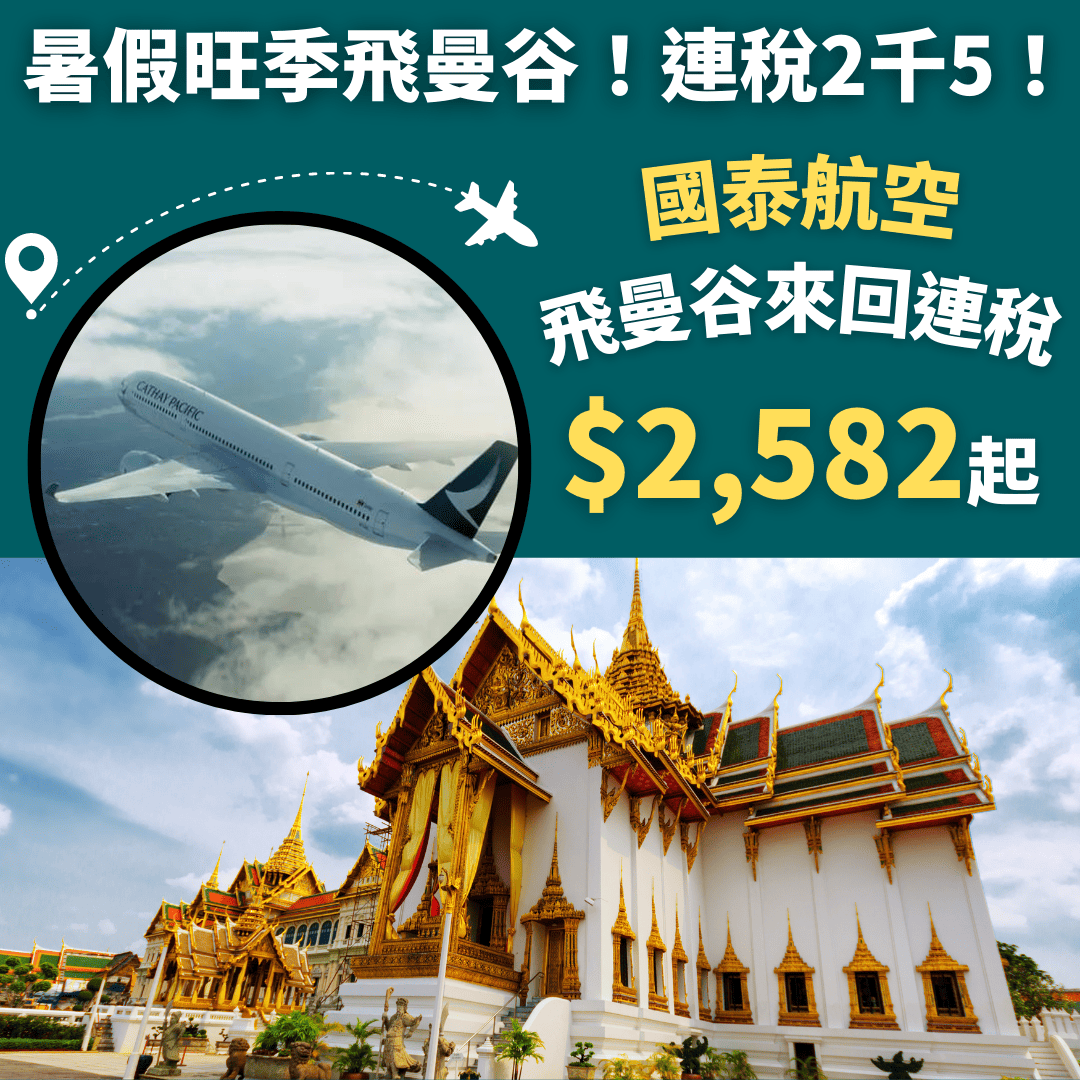國泰暑假旺季飛曼谷!連稅2千5!香港飛曼谷來回連稅只需$2,582起 – 國泰航空
