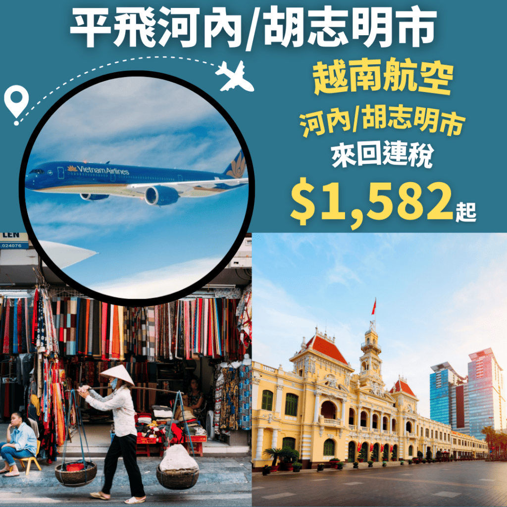 香港飛胡志明市來回連稅只需$1,582起、河內$1,621起!