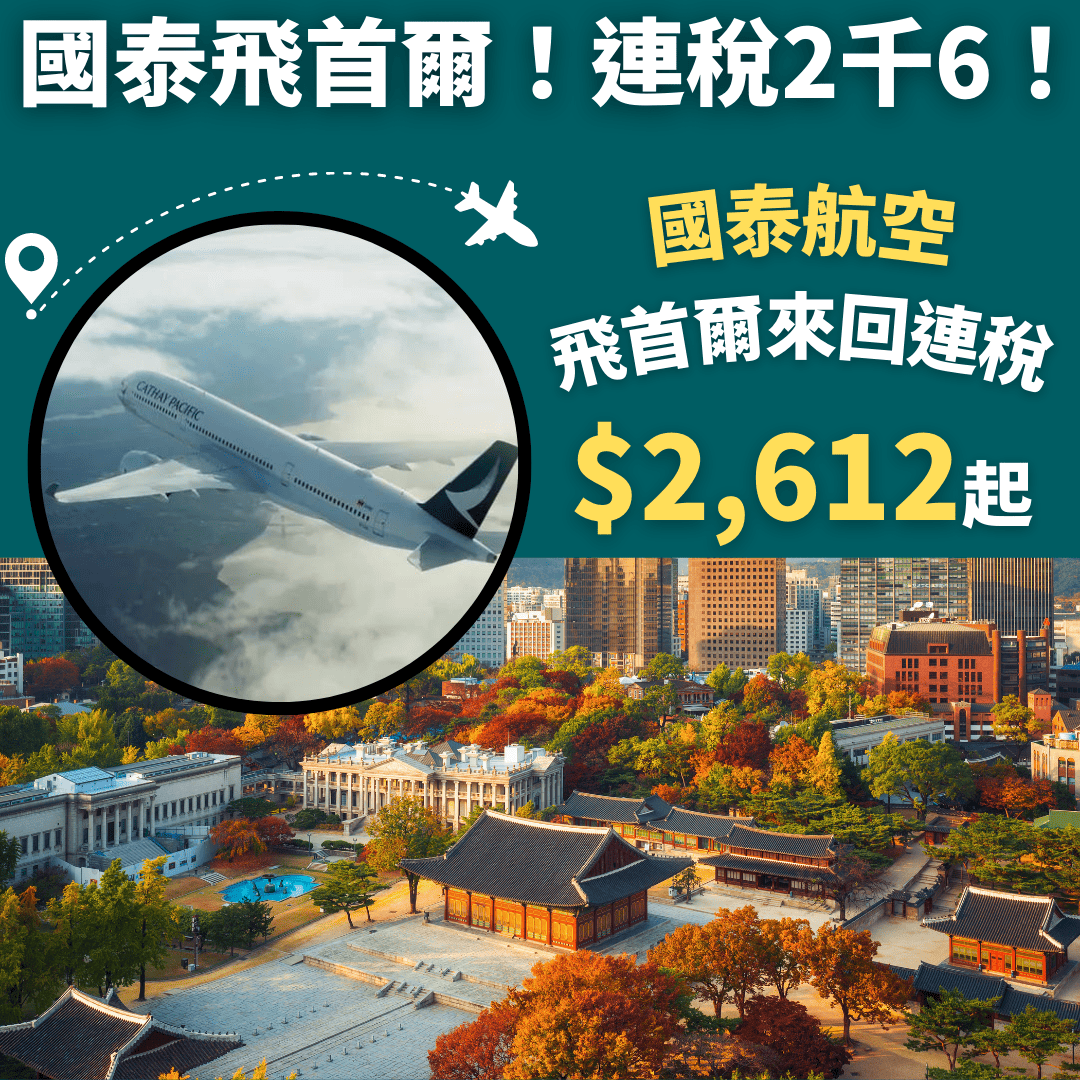 國泰飛首爾!連稅2千6!紅葉季都有!11月30日前出發!香港飛首爾來回連稅$2,612起 – 國泰航空 (優惠至8月31日)