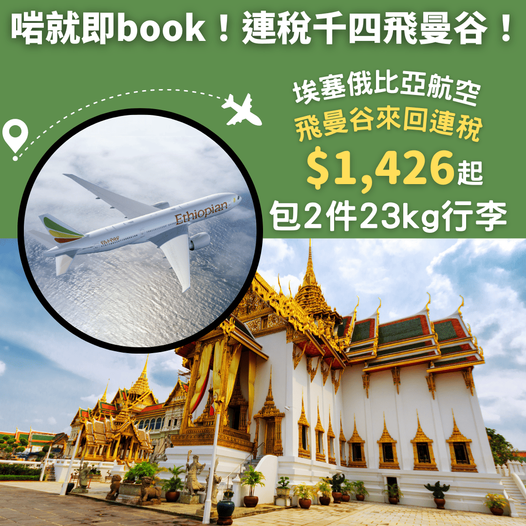 啱就即book!連稅千四飛曼谷!包2×23=46行李!香港飛曼谷來回連稅只需$1,426起 – 埃塞俄比亞航空