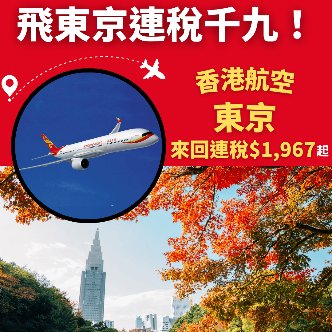 連稅千九飛東京!9-10月出發!香港飛東京來回連稅只需$1,967起 – 香港航空