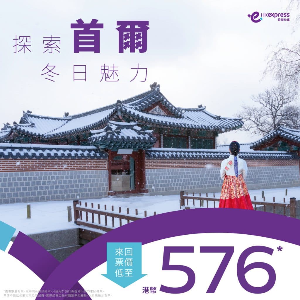 首爾快閃優惠!明年1月31日前出發!香港飛首爾單程只需$288起 – HK Express (優惠至10月8日)