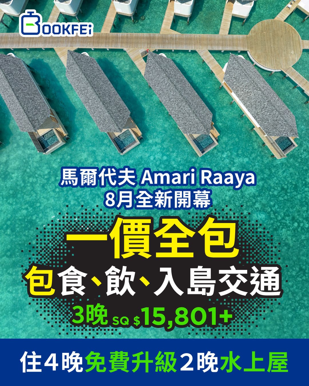 一生必去一次!馬爾代夫2024年精選推介!一價全包!新加坡航空來回機票+入住3晚全新Amari Raaya Maldives別墅+全日餐飲,4人同行每位$13,988起!包入島接送!入住4晚免費升級2晚水上屋!