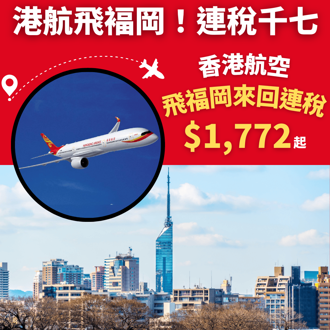 港航飛褔岡!連稅千七!明年1月30日前出發!香港飛褔岡來回連稅只需$1,772起 – 香港航空