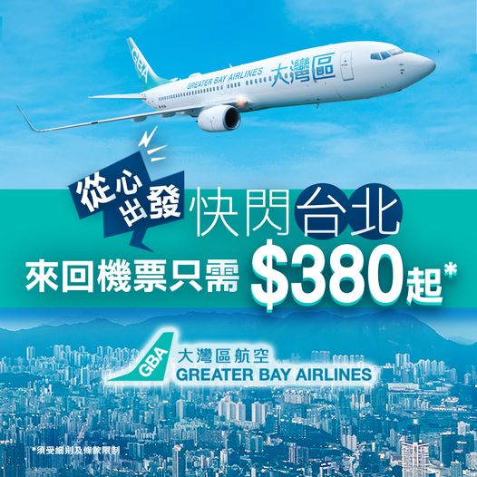 連稅千二飛台北!12月19日前出發!香港飛台北來回連稅只需$1,196起 – 大灣區航空 (優惠至10月24日)