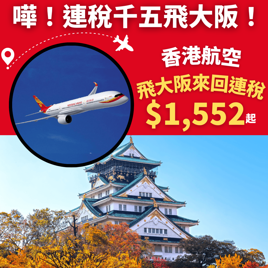 想平飛大阪,港航有連稅千五飛大阪優惠!