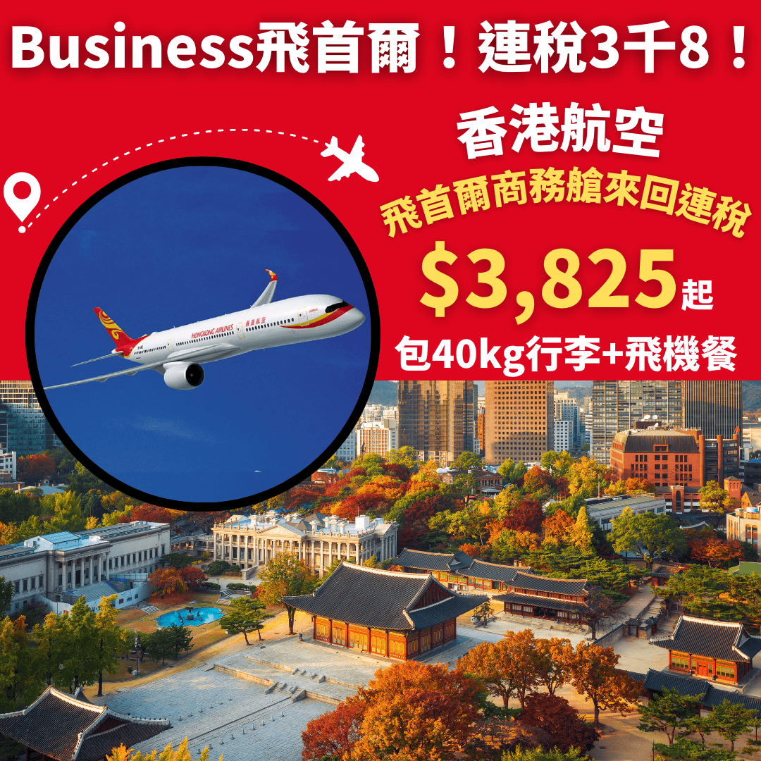 Business Class飛首爾!連稅3千7!包40kg行李!可以入「遨堂」lounge!香港飛首爾商務艙二人同行來回連稅每人$3,765起 – 香港航空