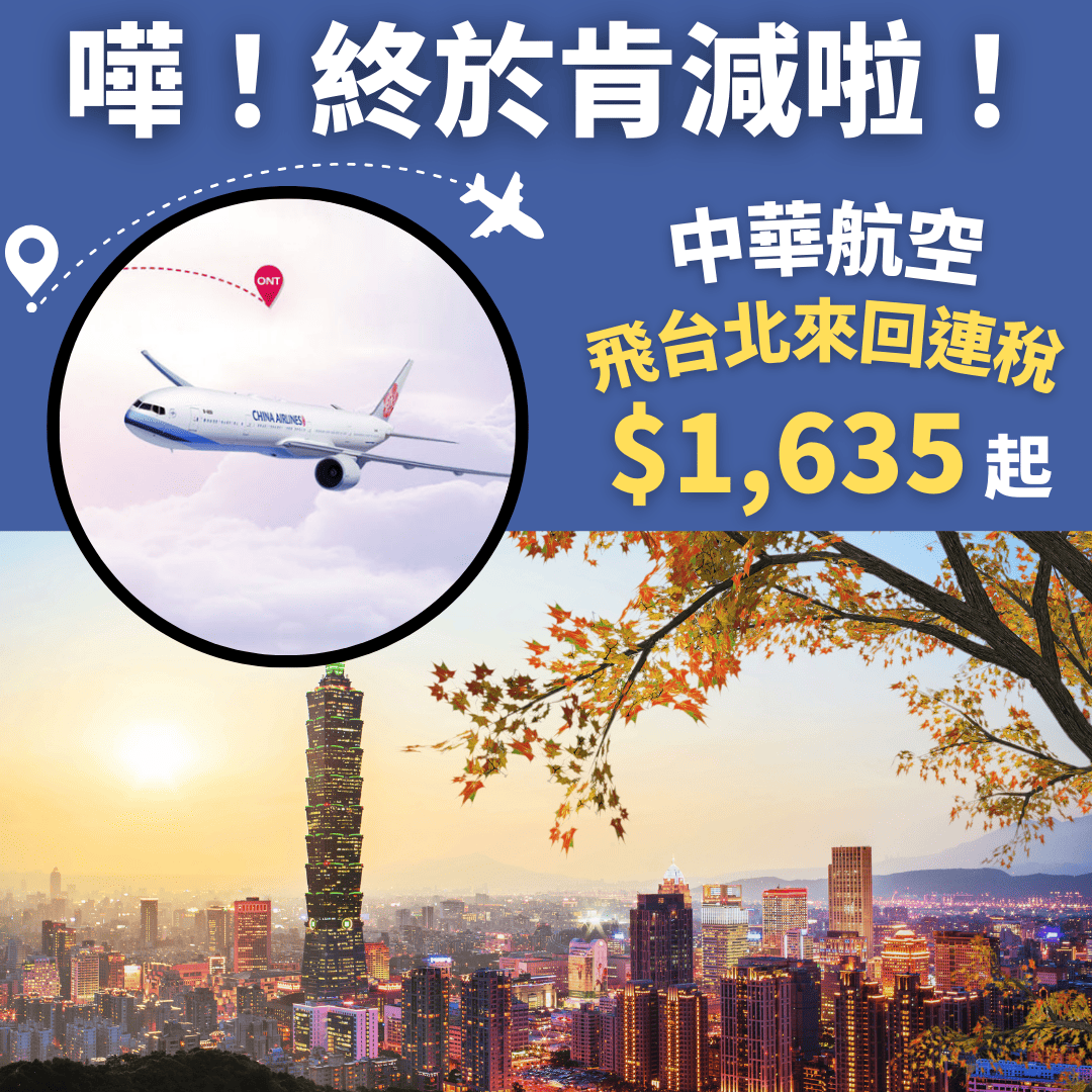華航飛台北!連稅千六!可早機去晚機返!香港飛台北來回連稅$1,635起 – 中華航空