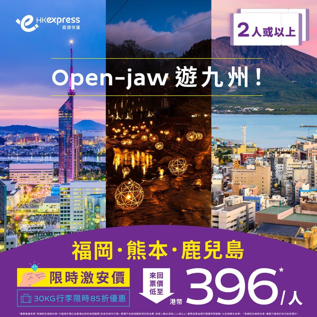 $198飛日本優惠!明年1月31日前出發!香港飛福岡/鹿兒島/熊本二人同行單程每人$198起 – HK Express (優惠至11月19日)