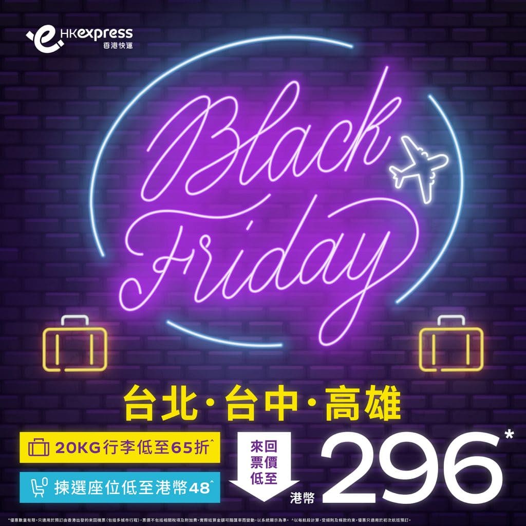 台灣限時優惠!香港飛台北/台中/高雄單程只需$148起 – HK Express (優惠至11月26日)