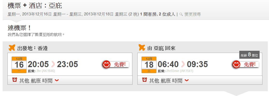 記住航班時間右上角寫住”免費“先係$0機票,酒店大家可以依價錢排序”由低排起“!訂之前計清楚係咪真係平先好訂!