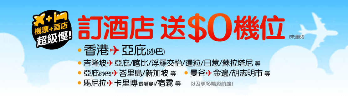 AirAsiaGo (亞航假期) 將會係今晚凌晨(11月4日)0:00再度推出非常受大家歡迎既訂酒店送$0機票優惠