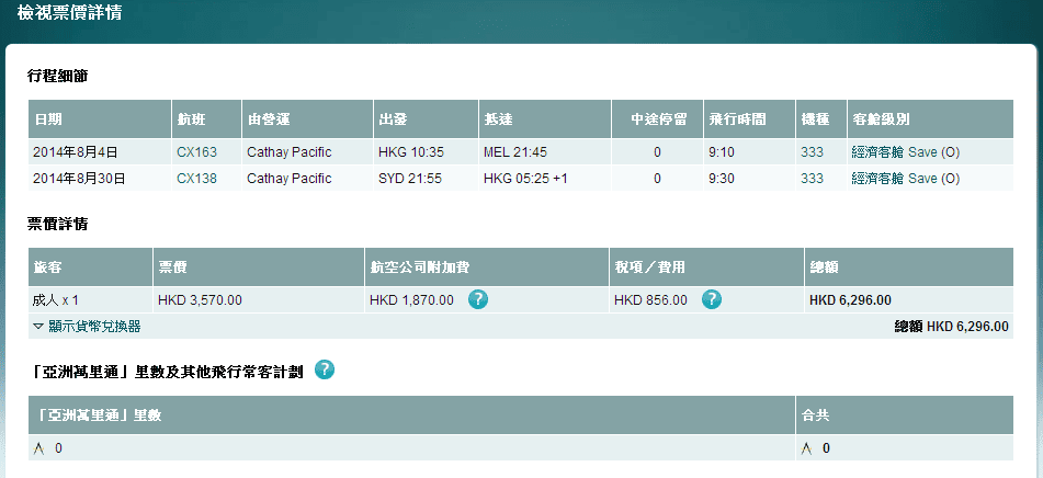 經我們測試,以8月4日墨爾本入,8月30日悉尼走為例