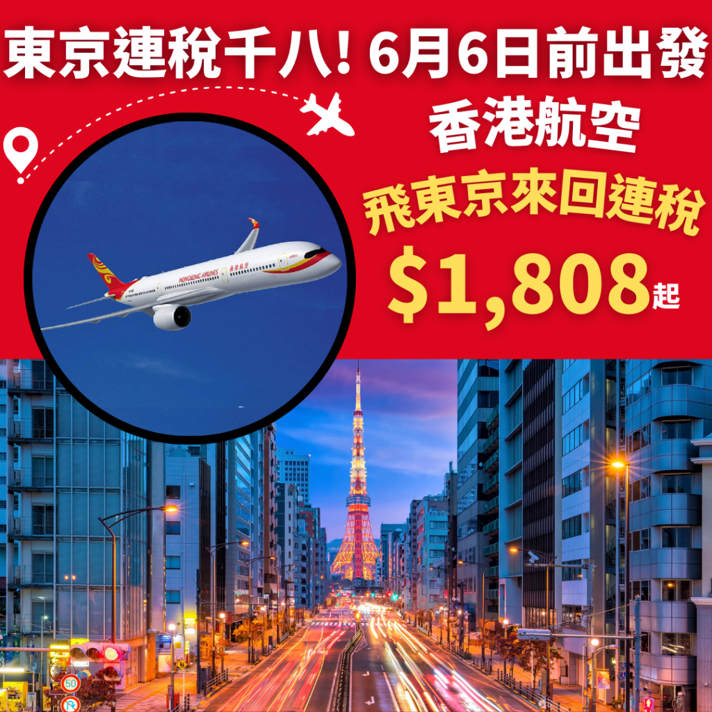 連稅千八飛東京!明年6月6日前出發!香港飛東京來回連稅只需$1,808起 – 香港航空