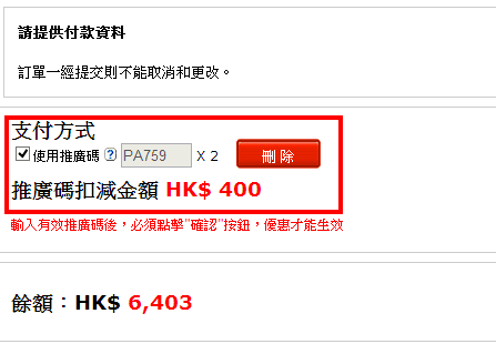 大家記住要係付款頁面輸入推廣碼 “PA759” 先可以每位即時減$200 (如下圖)