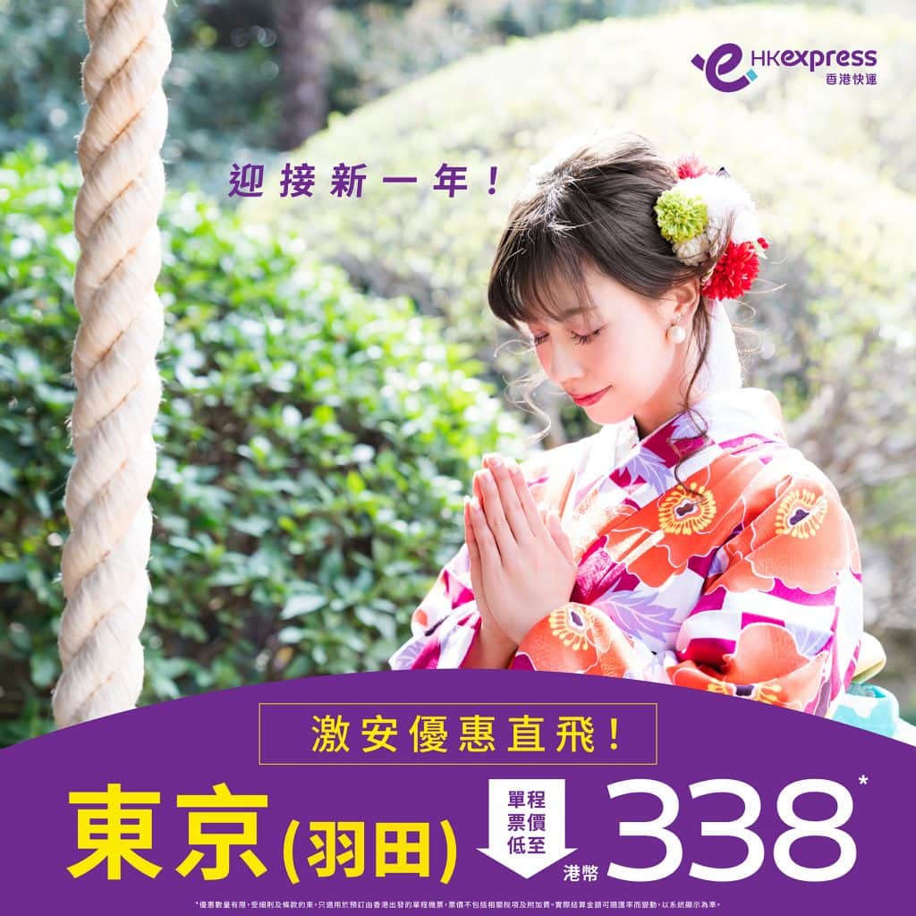 $338飛東京!明年1月31日前出發!香港飛東京羽田單程只需$338起 – HK Express (優惠至12月7日)