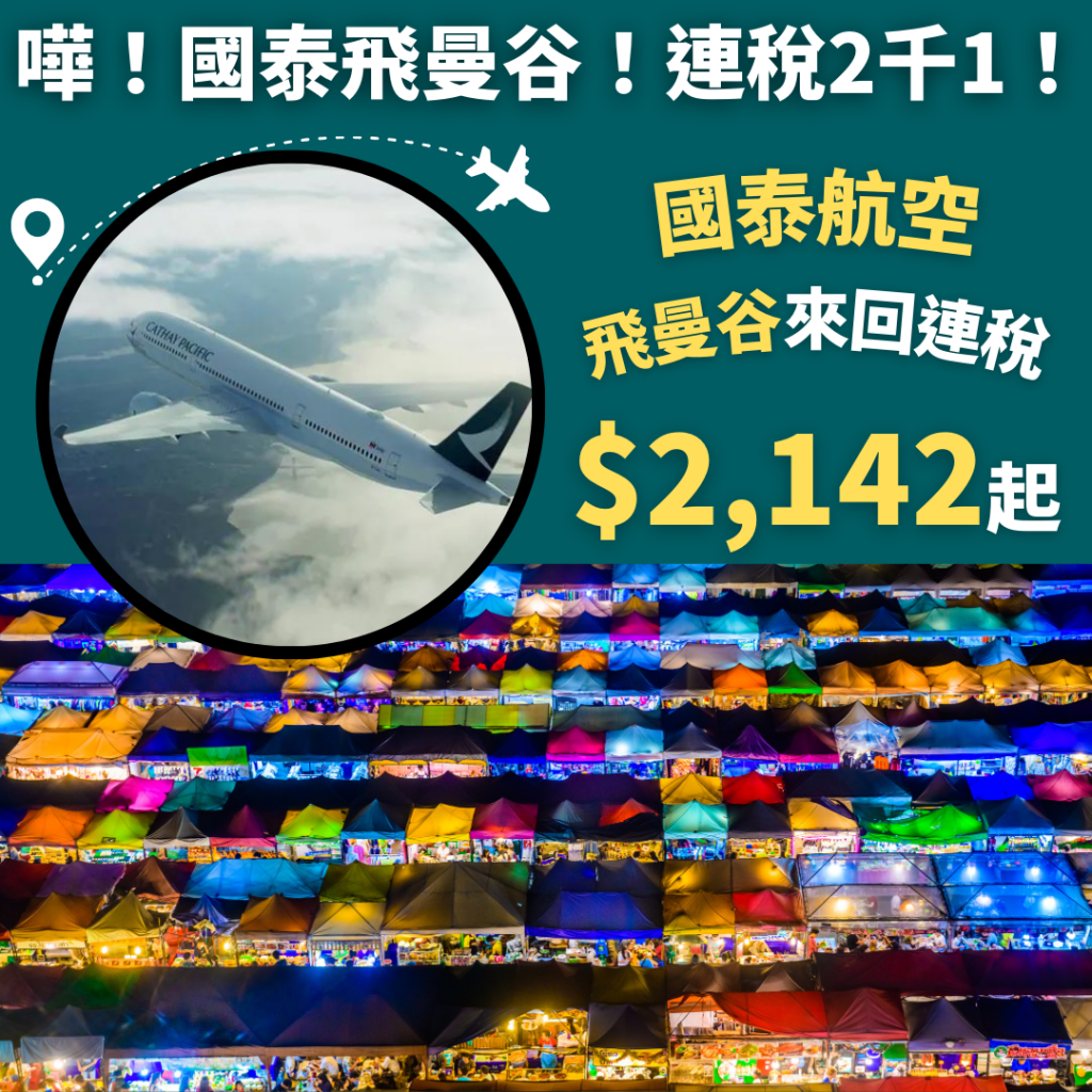 嘩!國泰飛曼谷終於減啦!連稅2千1!可早去晚返!香港飛曼谷來回連稅只需$2,142起 – 國泰航空 (優惠至12月15日)