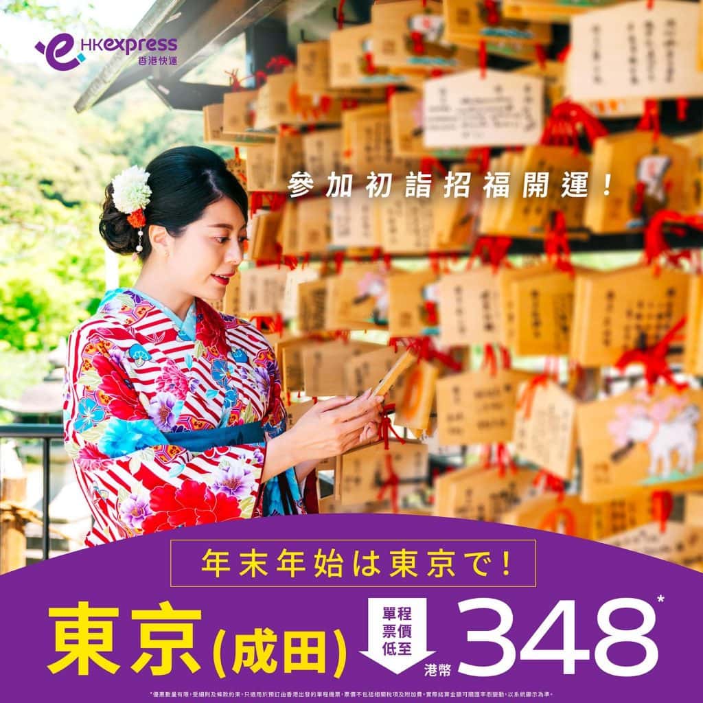 明年1月31日前出發!香港飛東京成田單程只需$348起 – HK Express (優惠至12月10日)