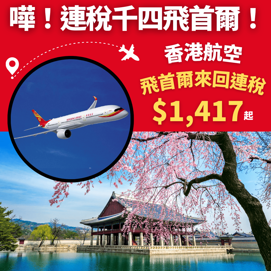 港航飛首爾!連稅千四!明年5月28日前出發!香港飛首爾來回連稅只需$1,417起 – 香港航空