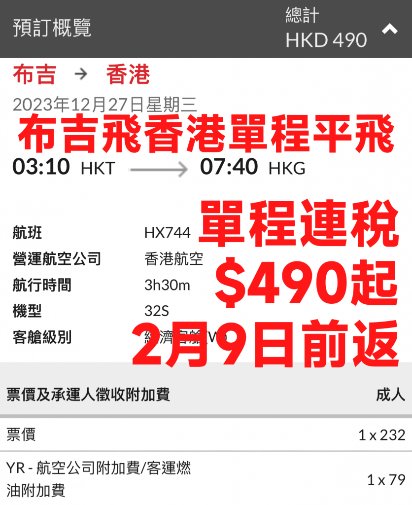 布吉飛香港單程平飛!2月9日前返!布吉飛香港單程連稅只需$490起 – 香港航空