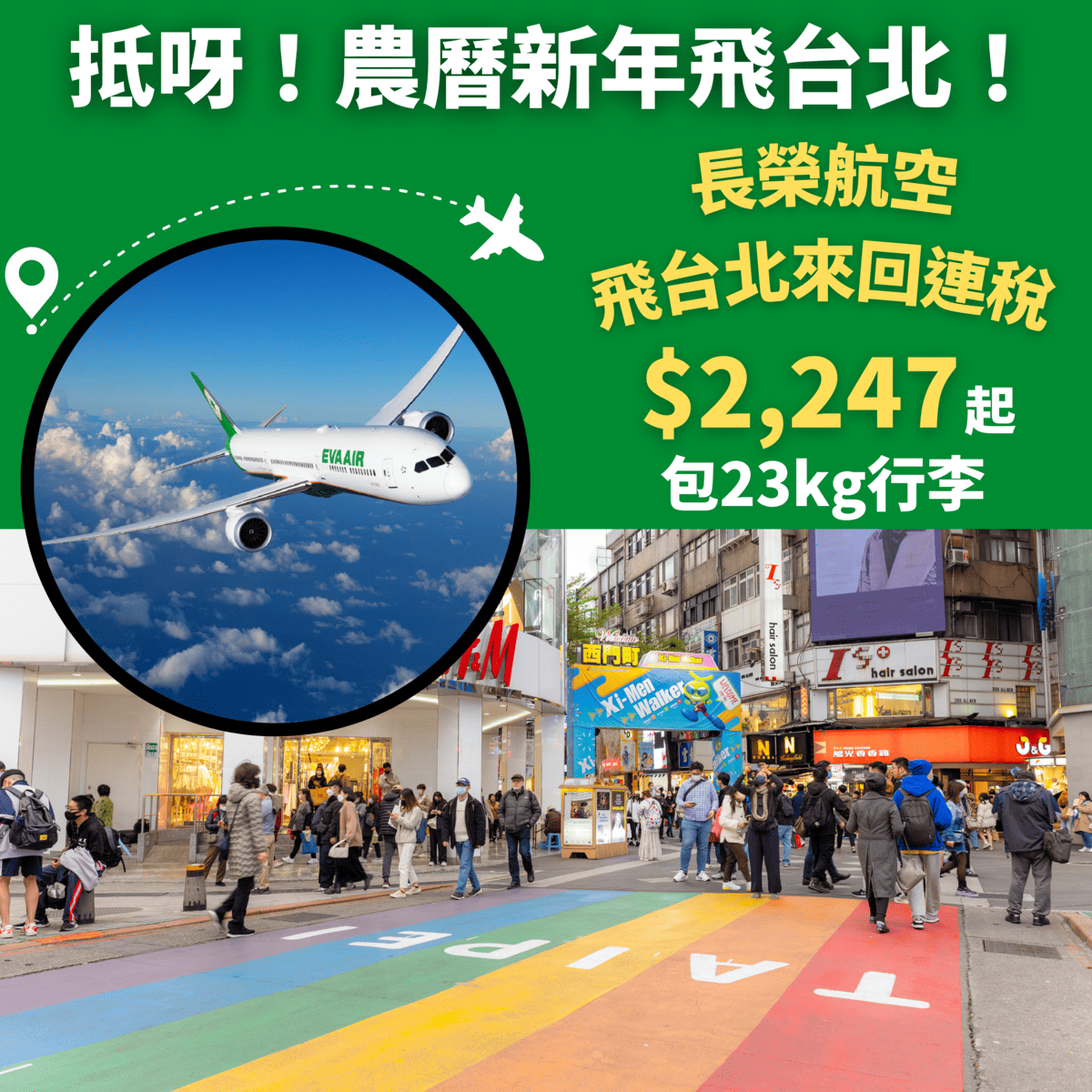 抵呀!農曆新年飛台北!連稅2千2!香港飛台北來回連稅只需$2,247起 – 長榮航空