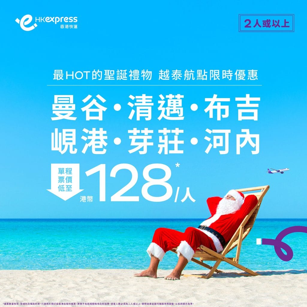 聖誕優惠!香港飛曼谷/清邁/布吉/河內/峴港/芽莊二人同行單程每人$128起 – HK Express (優惠至12月27日)