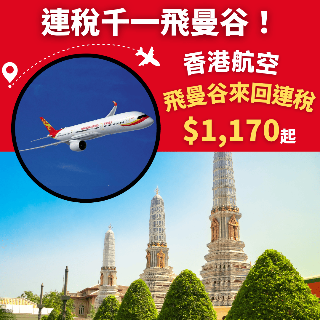 連稅千一飛曼谷!3月15日前出發!香港飛曼谷來回連稅$1,170起 – 香港航空