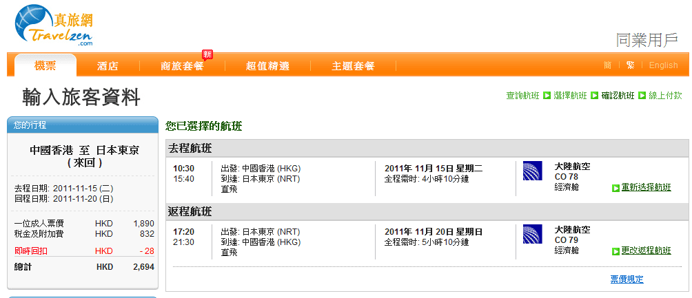暫時剩係係 Travelzen 真旅網見到有呢個class既機票賣