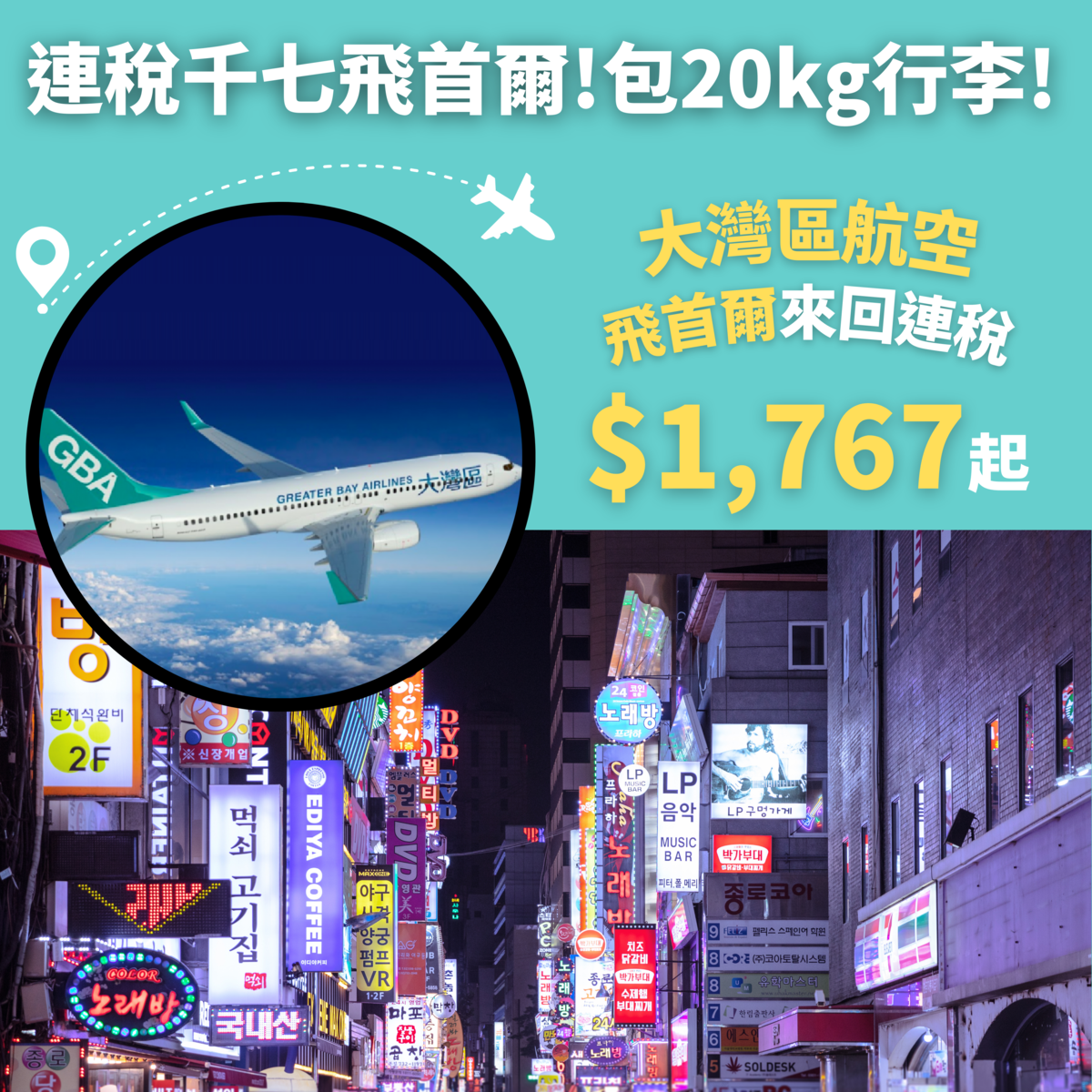 連稅千七飛首爾!7月12日前出發!包20kg行李!香港飛首爾來回連稅只需$1,767起 – 大灣區航空 (優惠至3月31日)