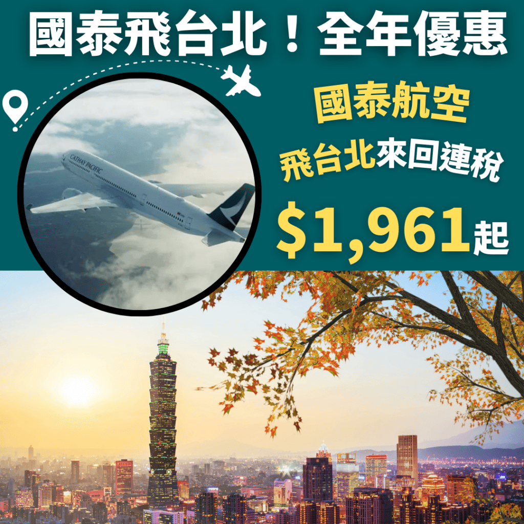 國泰飛台北全年優惠,繼上星期長榮推出咗連稅千七飛台北全年優惠(詳情:https://www.meethk.com/134859)