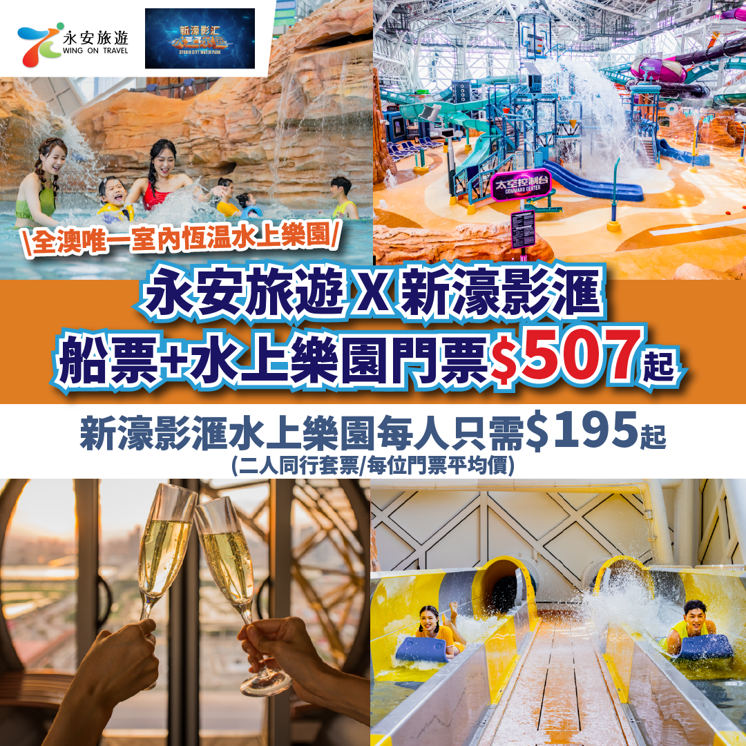 【永安旅遊 x 新濠影滙水上樂園】抵呀!玩轉全澳最刺激水上樂園!澳門來回船票+水上樂園門票每人$507起