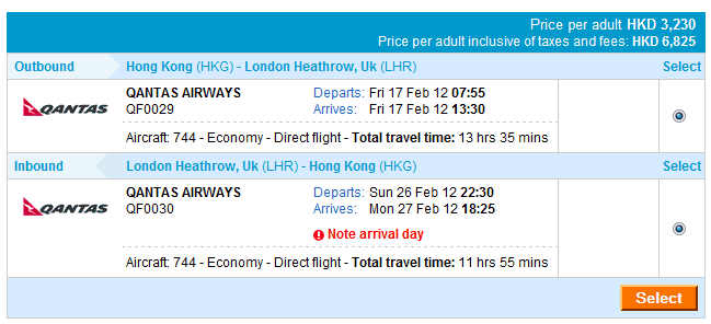 大家可上 Qantas官網 或 ZUJI HONG KONG 查一下航班機位和訂購。(訂票時一定要選2人或以上先ok)